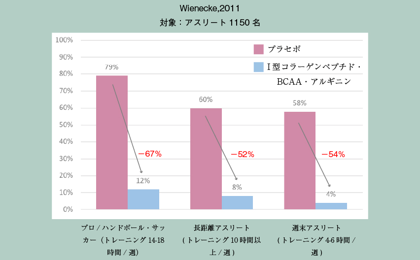 コラーゲン摂取を継続したプロアスリートのケガ発症率が約67%減少したというデータがあります。